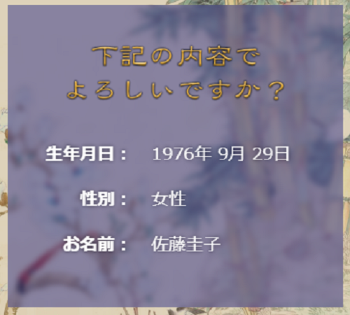 生年月日・性別・名前・結果を受け取るメアドを送れば…